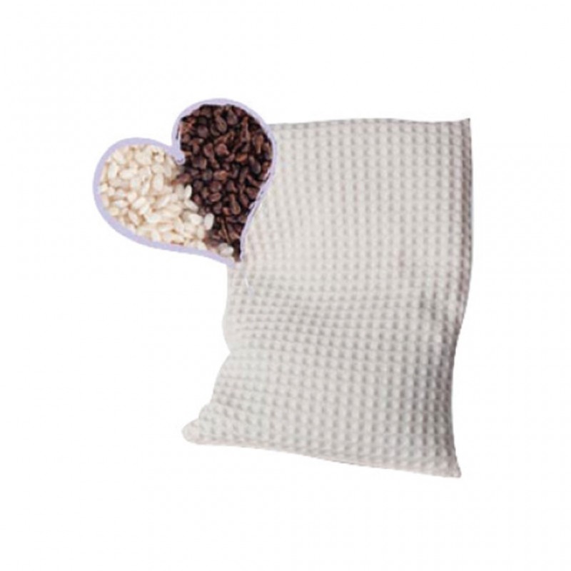 Cuscino rivestito in puro cotone certificato Oeko Tex® contenente una miscela di riso e vinaccioli, si scalda generando un grado di umidità bilanciata con il calore ed è indicato come coadiuvante per spasmi intestinali, coliche neonatali, ingorghi mammari durante la montata lattea e può essere d’aiuto in contratture e rigidità muscolari.