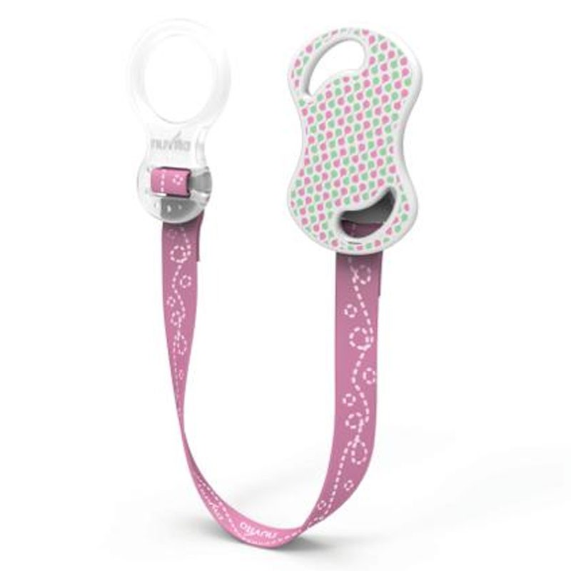 Adatto a tutti i succhietti Air.55 con bottone centrale, il nastrino porta-succhietto con anello in silicone di Nuvita permette di agganciare il succhietto agli indumenti con la clip in maniera semplice e veloce, evitando che cada a terra e si sporchi o si perda; non lascia segni sui tessuti.