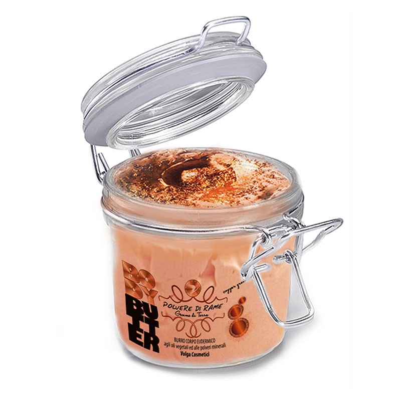 BURRO CORPO RAME – La texture bronzea è leggermente cromatica, perfetta per la pelle brunita ed abbronzata. Un fragranza fiorita, un effluvio di orchidea arricchisce questo impasto elegante e raffinato.